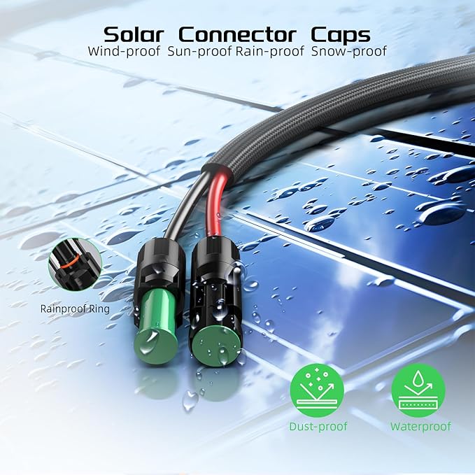 • 【High Efficiency Charging Cable】The cable is made of 12AWG/10AWG tinned copper wire, which minimizes power loss and improves charging efficiency, and the shell is made of durable insulating and flame retardant material, which has the best insulation effect and is heat resistant to 120℃. Solar Wire Temperature Range: -40℉~248℉(-40℃-120℃); Outdoor ambient temperature: -40℉~194℉(-40℃-90℃).